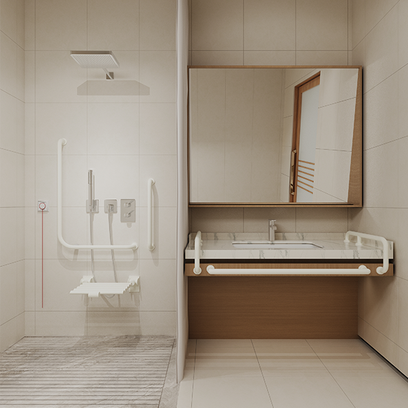 卫浴间扶手采用防滑抗菌的优质尼龙材质,坐浴设施选用防水防腐材料,守护老人卫浴安全。